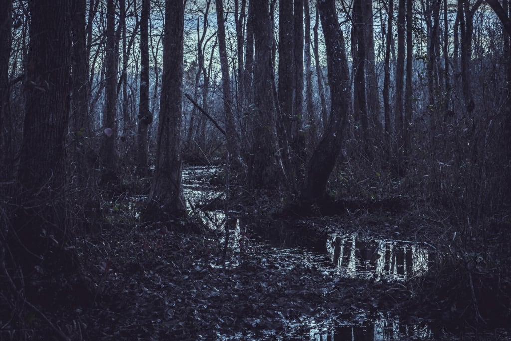 Dusk was a mere formality in the swamp, for the misty grayness never truly allowed sunlight to enter. Still, the old woman reflected, twilight had always seemed to bring with it a peace that she lacked at other times. She sat on her rickety porch, rocking softly and surveying her domain.