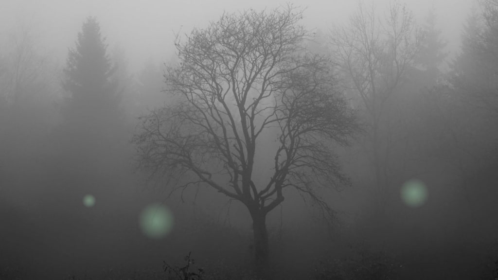 The world around me had become soft and wispy, out of focus and cloud drenched. Everything was reduced to blurs of chalky color, darker tones amongst lighter, with no real definition or delineation of where one thing ended and another began. I would barely know which way was up and which was down if my feet hadn’t been firmly fixed to the ground. The fog had descended so fast that I hadn’t been able to get my bearings before the world went hazy—I didn’t know what was in front of me or to my sides, which footfall would land securely and which would see me tripping over a log or twisting my ankle in a hole. My host had told me, “Be wary of walking alone in the woods too late, and always stay to the path.” I’d thought she was just being superstitious. I should have listened.