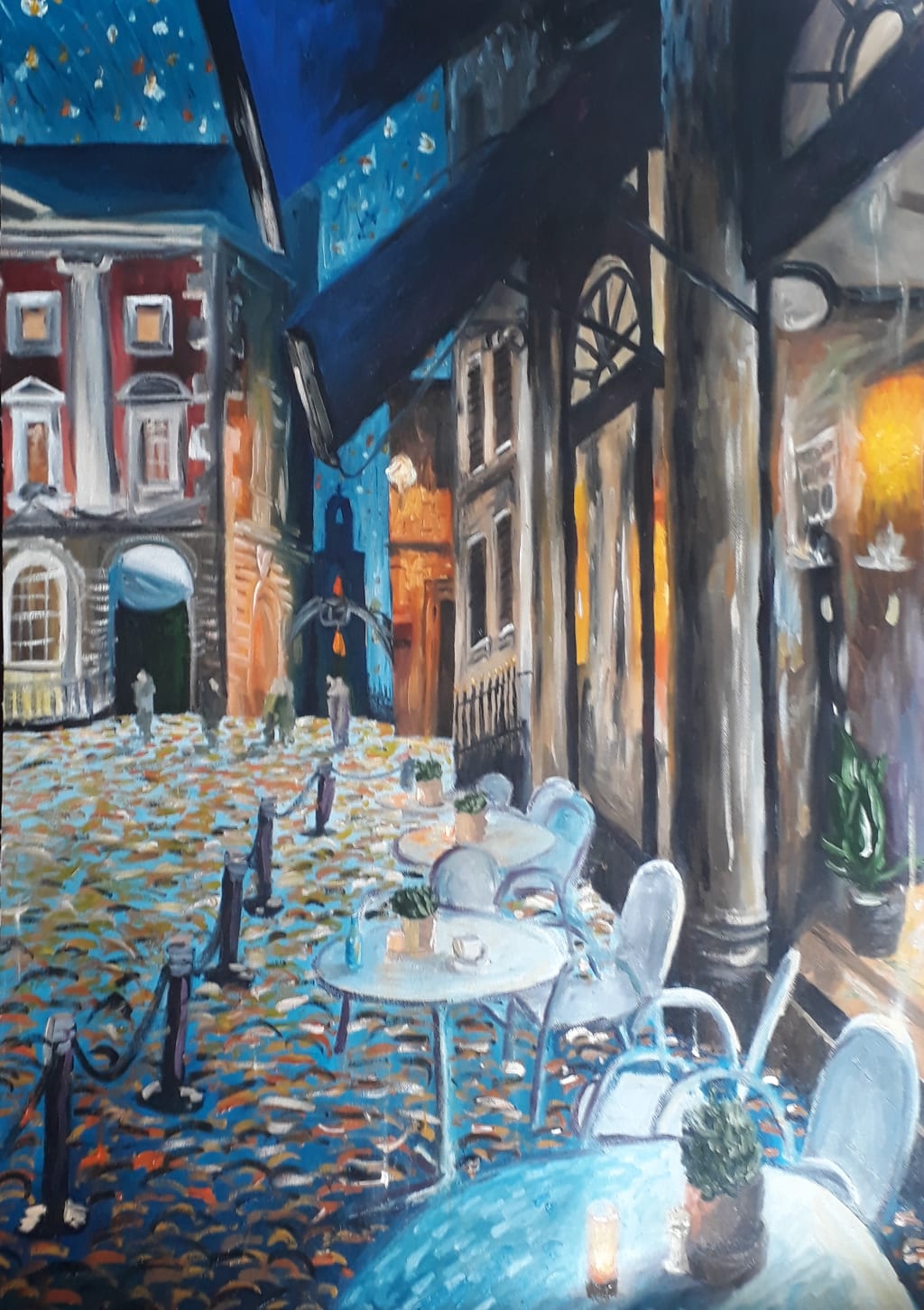 And now, today, you took off the glasses. The candlelight fell soft on the folds of the untouched bedsheets, and behind you I admired the blue that cascaded through the window. Then, as you looked at me, I looked at you, and for the first time, through the space between us in which an infinite future laid, we saw eye to eye.