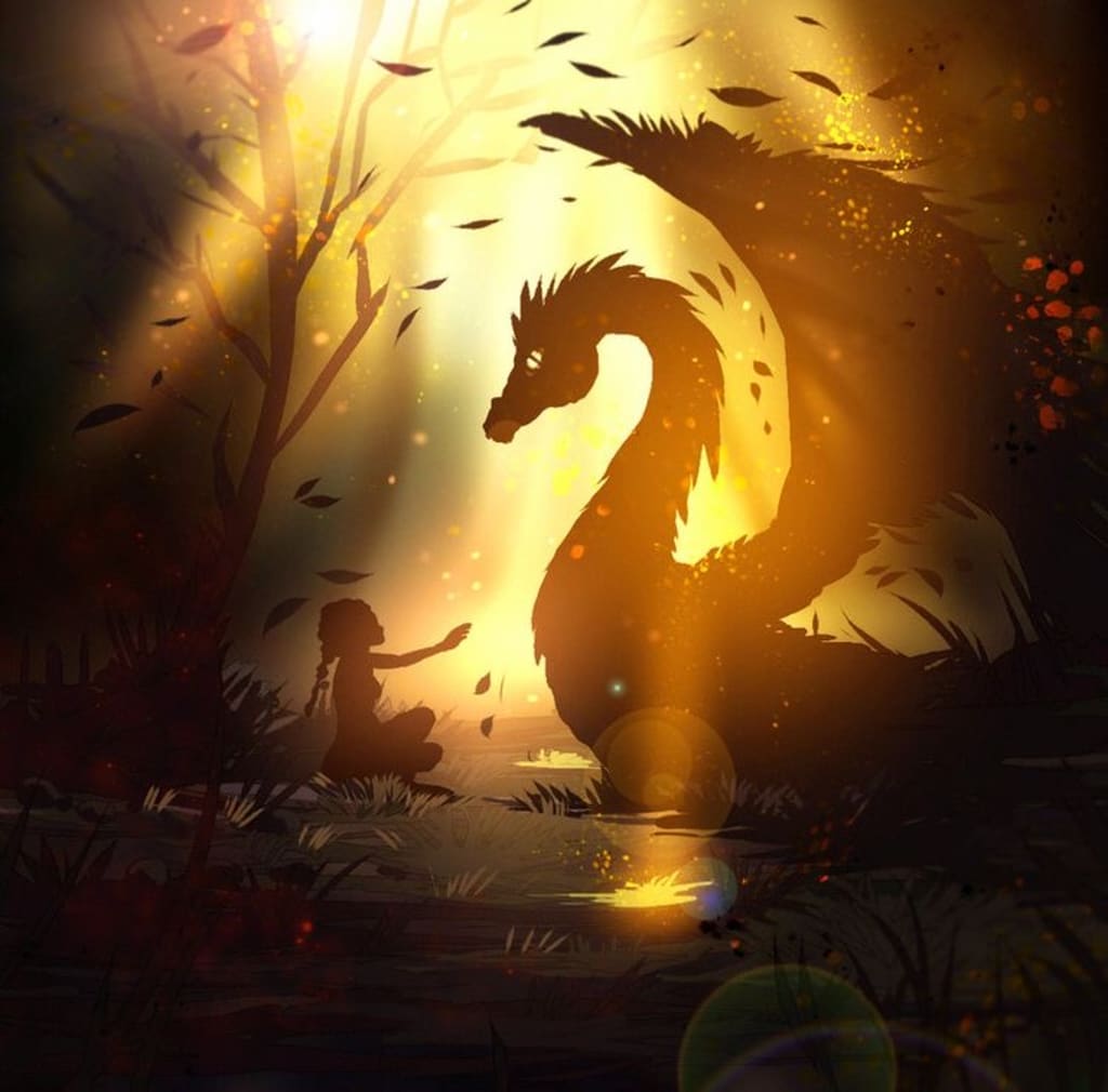 Camouflaged perfectly into his surroundings, the dragon lay silent and invisible on the ground, transfixed on the creature that brought him down from the skies. Except it wasn’t a creature at all, but a human child wandering the forests alone. Unlike normal human’s her age, who would be terrified to be caught in the forest in the dead of night without their parents, there wasn’t a trace of distress on her face. Normal humans… She didn’t look like a normal human either. She had strange, beautiful silvery white hair, pale yellow eyes and rich dark skin. She was like the night sky given human form.