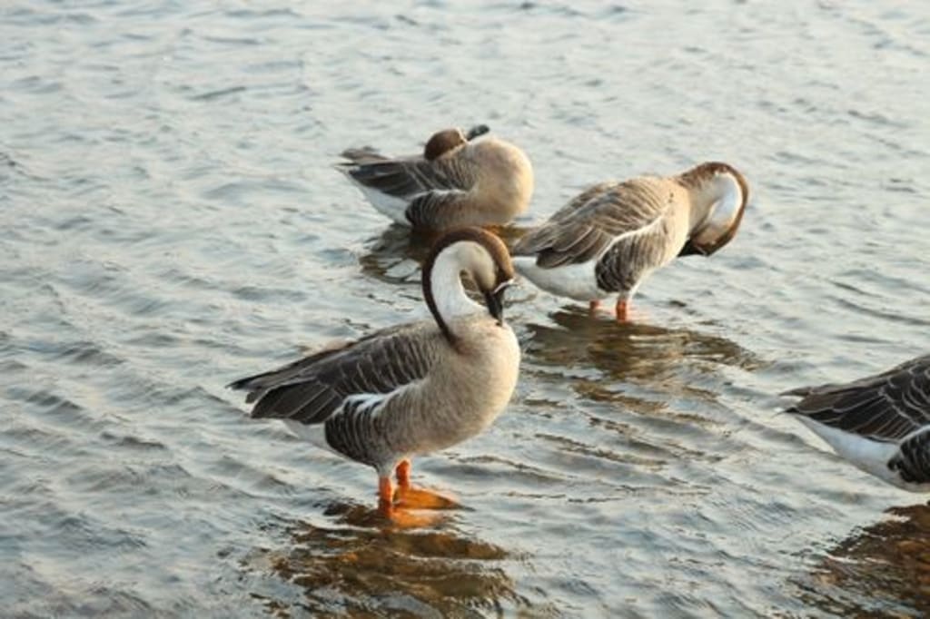 A long time ago, wild geese and ducks were two sisters who lived by a lake in the south.