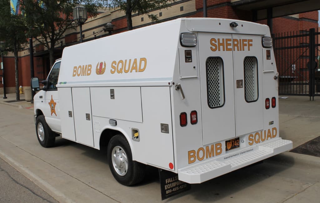 The bomb squad arrived soon thereafter. They didn’t wear any special attire, but they did bring bomb detection gear.
