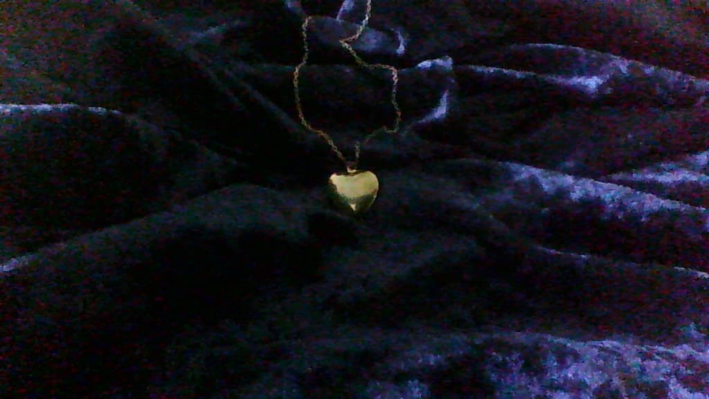I woke up to my bed dipping under the weight of my father sitting beside me. No words were exchanged, and in his hand he held my mother's locket. It was a small golden heart on a thin chain. It might seem insignificant to someone else, but to me it held memories of happiness and love.