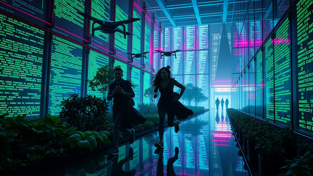 The floor vanished. They fell into a server room, its walls pulsing with stolen user data.