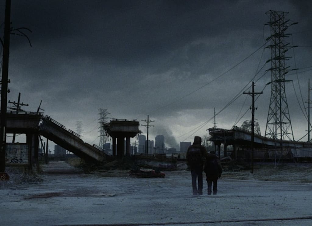 <Picture sourced from Roger Ebert's review of "The Road" (2009), which many theorize to be set during a volcanic winter. I wished to show the bleakness of the city during the story, but I could not remember any other post-apocalyptic films off the top of my head that look this dark.>