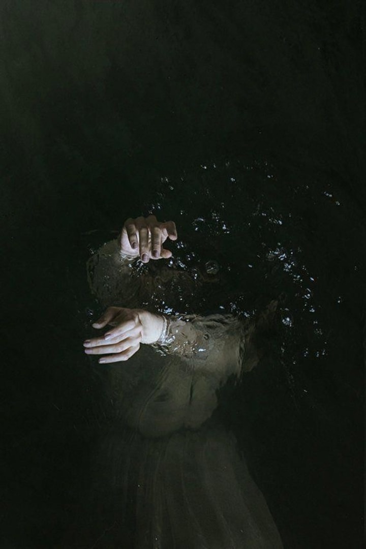 With the force of my current I rip at her legs. She hardly notices at first, but my grip tightens around her as I drag her down. The fishes scatter to the outside of my whirlpool, intent on watching how the scene will play out. But I know there’s only one ending. I yank her hard towards the mud and she lets out a terrified cry as her fingers begin to slip. I loosen my grip and she bobs back to the surface. The fear in her eyes has me regretting my choices, but only for a moment. I caress her cheek with my waves, the only sign I can give her that I’m trying to help. That she’ll be safe with me.