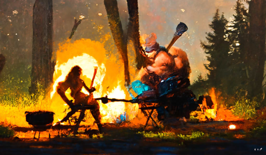 Despite the side effects, Hork was happy to have cooked a filling meal for himself. As he sat back and scratched his belly, an idea came to him. He would make peace with his wife's family using his new skills as a chef. He just needed a little more practice.