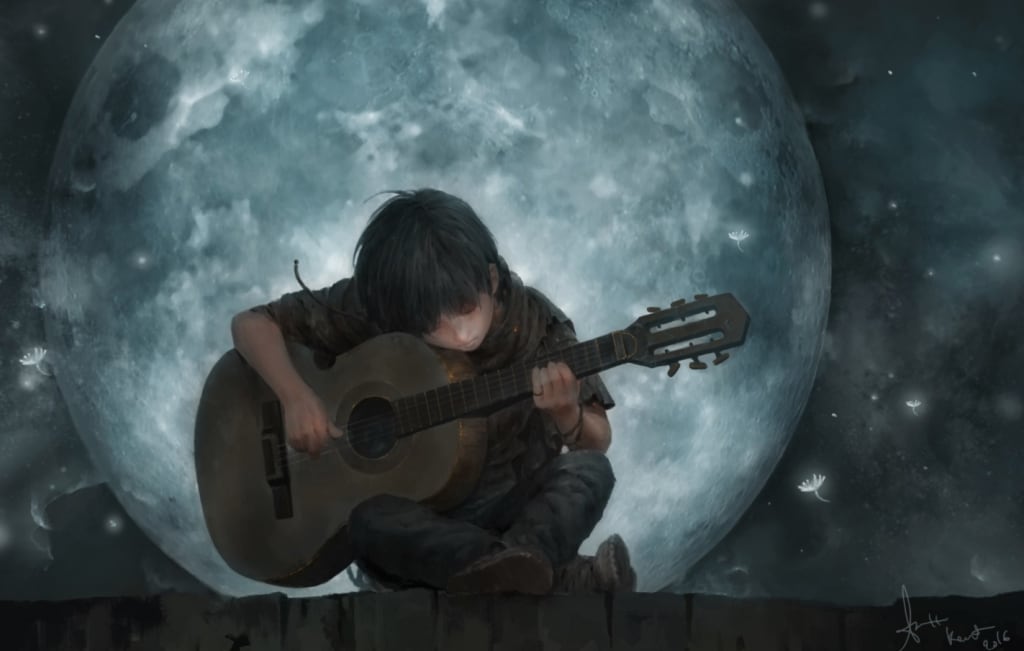 His guitar was the only possession he had left of his father who had passed away some years back during complicated brain surgery. His father was all he had given that his mother died during his birth, one life in place for another. Right after his fathers' death, he was shoved and tossed in homes of people who could never love him enough to keep him. All he had was his acoustic guitar, his bronze strung, finely carved wooden guitar, detailed by him and his father with a black and golden ink finish. The memory of these shared moments was precious because all they had were each other. Now, Wukeh had nothing. Not his mother, not his father, and now his guitar is lost forever, he became miserable.