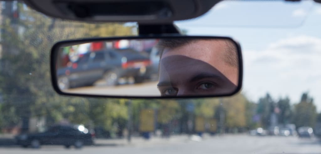He slid in the front seat and turned the engine over. He glanced in the review mirror to back out but instead of the graveyard scenery, he expected to see he instead found himself staring into a pair of familiar green eyes.