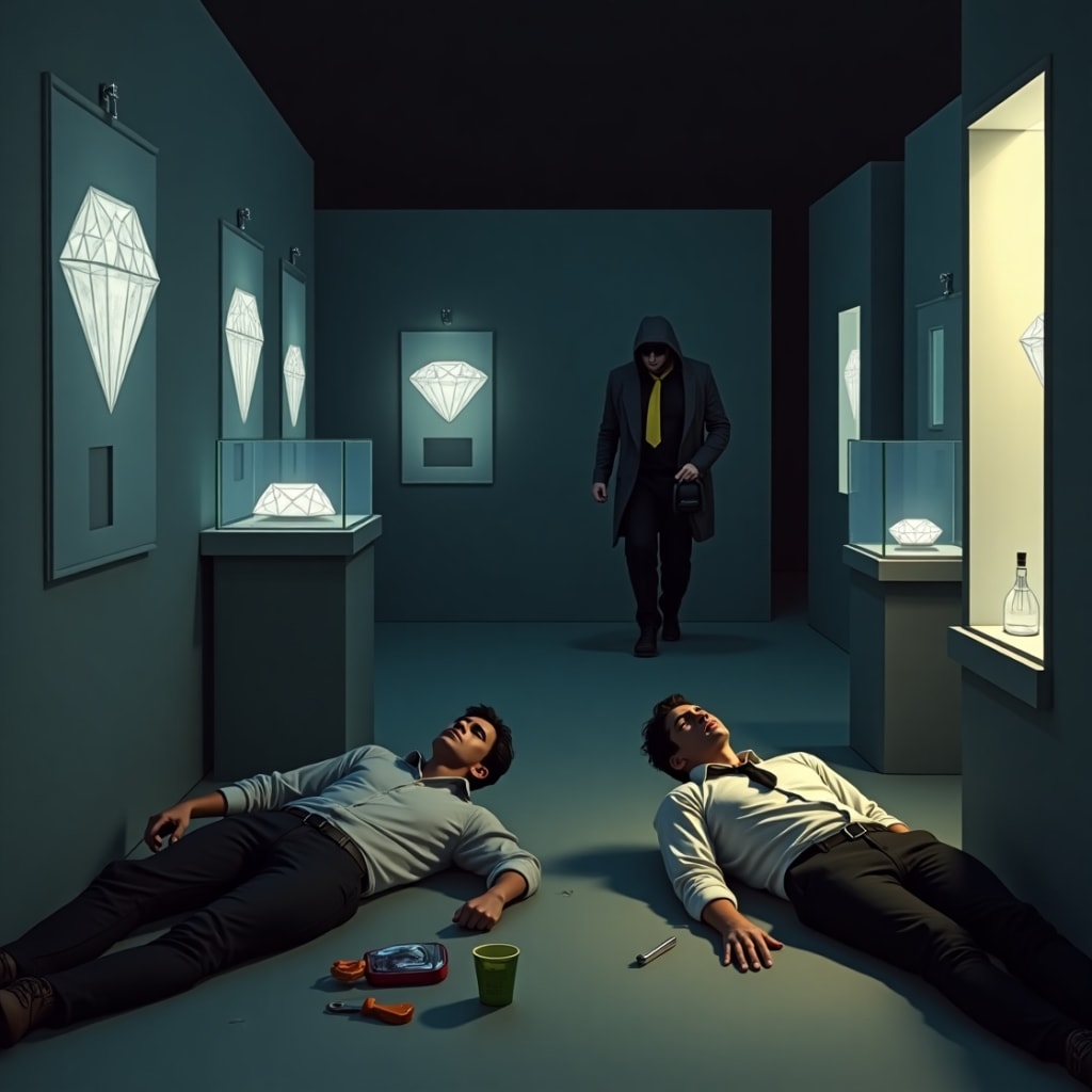 So, when he wasn’t looking, I laced his cold drink with a sedative. Soon, he’d be unconscious, and then the diamonds would be mine.