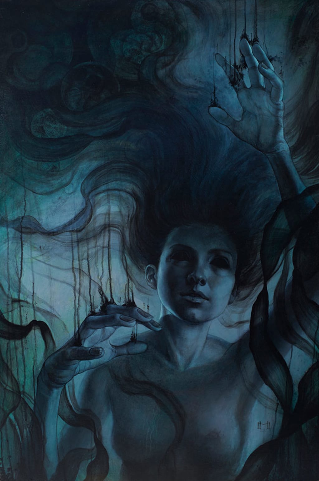 “Now back to them living away from the village in peace, or as close to peace as they could reach, now as time began to go on she became with child, or pregnant. Now with that, the fear in the villagers began to surface, yet months went on and it seemed like things were getting better. But again, with so much joy. Something horrible is bound to happen. Tonight wasn't like any other night, tonight was a full moon and when night fell she walked out into the lake and sang to her heart's content. Slowing the waves and heating the waters with her palms, as her lover left for the village to give her space, and to get the fabric they needed for the upcoming child. Ready to trade with pelts from hunting and gems they found. She walked deeper into the water laying back and floating and she gazed upon the stars, getting lost in time and forgetting the world around. She then felt kicking, the babies moving. Alerting her that it's probably time to get out of the lake. She started to walk back and as she looked up. His partner's head was on a pike and behind were villagers yelling to leave, some yelling to kill her and others just there to watch. It's said at that moment you could hear her heart break, with the breaking of her heart the earth fell still, only the breath or the villagers could be heard. When all was still and movement ceased to exist she let out a heartbreaking scream at the sight of her lover's head without a body. It Killed any shred of humanity he helped her find, any good that was in her faded and no longer did she try to hold back. Screaming to the creator begging him for the power to kill anyone in or around these waters. When given the price of what she asked for, she paid the price no soon to be mother should. The price was her unborn child, and to live forever trapped to the water and its edges.”