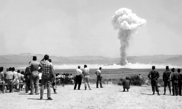 It was spring . The 456th day after the first test. Across the expanse of dead woodland nuclear dust peppers the morning air like toxic snowflakes. A lone homestead juts out like a nail to be hammered, white against the dull yellowish air. A quick flash of movement from an upstairs window reveals a spectator hungrily eyeing the forest. David Crenshaw takes one hagggered breath before quckily closing the shuteers immediately seeing what he was hoping he wouldn’t.