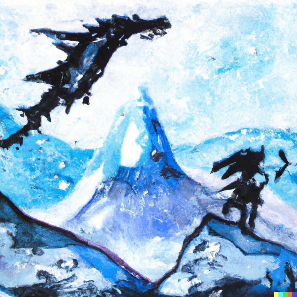 Oh, doesn’t look like he is leaving. No, he is starting at my claw. No, not my claw but the cloth of the little girl. The fabric that got stuck in my teeth. Perhaps he wants it back? I hand him the material, and he yanks it away. Ungrateful cur. The heat rises in me. I smell the brimstone, and the sides of my mouth curl up. I haven’t done this in a while. I breathe out my fire, melting the ice that gets hit immediately. Somehow the little thing was able to get out of the way. No matter. I may eat him, too, and keep the armor for my collection. The little man starts to yell, he tries to take a swipe at me with his puny little sword, but it doesn’t pierce my scales, silly little man. I take my claw and pin him to the wall cracking the cave around us. He is pinned and is still yelling, breathing heavily. The arm that is holding the sword drops. The sides of my mouth curl up again. I smell the brimstone in my nose, and just before I unleash my flame, I hear a clink. And an arrow falls to the floor. I look up from where it fell. A colossal icicle hangs from the ceiling. Another arrow hits it, clinks, and falls to the floor.