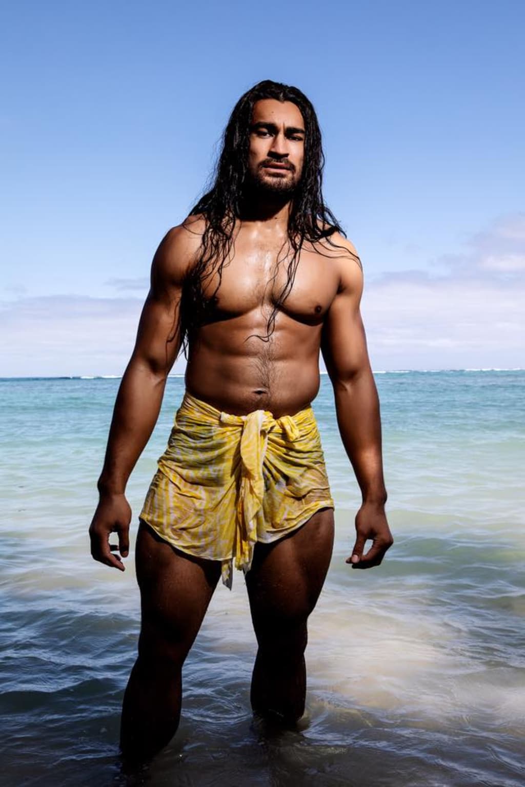 Lu stood on the bow of the first of 40 Alias as they made their way from the mouth of the inlet into the deep canyons of Fagaloa. At 6 foot 4 inches of muscle and tattoo, Lu was an intimidating figure. He was built solid, thick legs, chiseled stomach, wide chest, wide shoulders and powerful arms. His hair was long and braided. He had deep compassionate brown eyes that liked to smile, but were quick to assess his surroundings. His sculptured face was both handsome and intimidating. There were scars on his body from battle and from his work. He was a chief of his mother’s family who resided in Fagaloa. On his shoulders he wore a cape of white fur, the spoils from a raid the folauga had executed in the northern lands. Around his waist he wore a siapo, the traditional mulberry tree bark cloth.