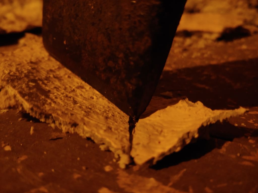 She’d planned on falling, but not uncontrollably nor this soon. Slivers of wood slid into her face and arms, the floor stuttered out snaps and moans. For a moment she thought the floor would hold, then the planks broke beneath her. She heard a shot fired nearby, and then that clear, pretty voice rose in indistinct song again.