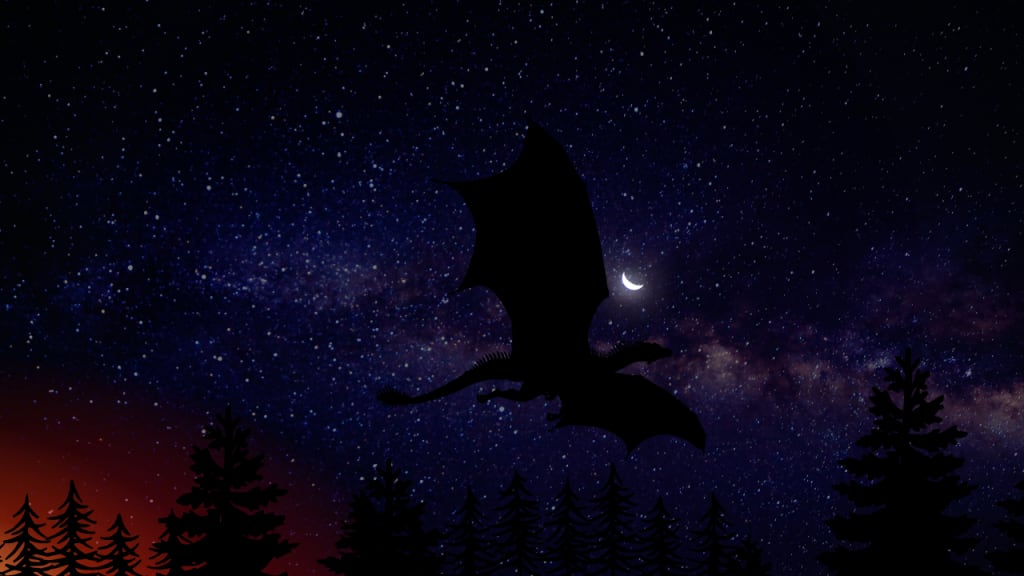 She jumped. When she reached the apex, she pushed her wings down hard, gritting her teeth against the pain. More arrows came. They collided with her scales, bruising the soft skin underneath and grazing her wings. She beat her wings again, the tips scraped the trees and then she was above them. Two more powerful strikes had her out of the human's reach. She circled above. The forest was burning. In the light of the flames, she could see the woman’s final resting place. It was not the funeral she deserved but allowing the dark creatures of the night to take her was worse. As she circled again, she swooped down and let loose a torrent of fire. It rippled between her teeth and rushed toward the trees, the ground, and the woman. She banked and turned south before the streams of human magic could catch hold of her.