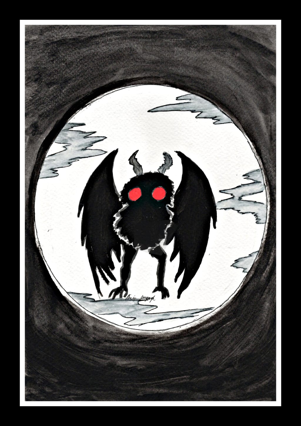 "#mothman...... isn't that awesome!!!!!!! And oh my god, he said that he knew your work and that's how he found me. Isn't this awesome!!! I TOLD you doing the cryptid pieces was going to be great!! You're making bank and I have a DATE!!!!"