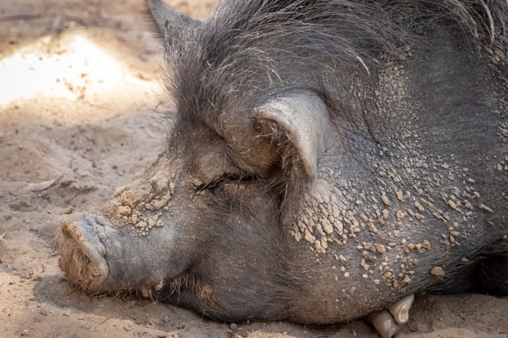 Ignoring my own cruelty, I moved forward, filling the trough with multiple buckets of trash. Molded bread, chunks of cheese, discarded lettuce, and fermenting fruit. Then I quickly stepped back so as to avoid his charge, but there was no charge. The old pig would not eat.
