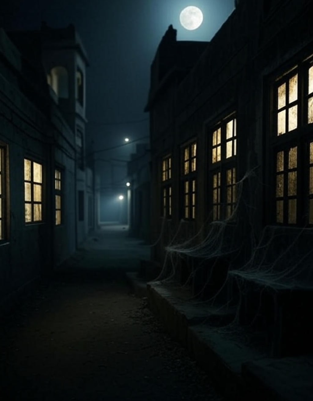 It was 11 p.m. when I reached the haveli. Its crumbling walls loomed under the moonlight, and the windows were choked with cobwebs. The creaky wooden gate groaned as I pushed it open, my flashlight cutting through the darkness. Inside, the air was heavy with dust, and the faint smell of decay lingered. Old furniture lay scattered—broken chairs, a cracked mirror, and faded portraits staring blankly at me. My camera hung around my neck, ready to capture the eerie beauty.