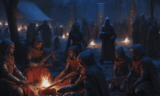 The darkness of night had by this time fully fallen, the only patches of light being those areas where men gathered by fires, both to escape the darkness of night and the bitter cold of winter as snowflakes persisted in falling without letting up. If anything, the snow fell more heavily with each passing hour.