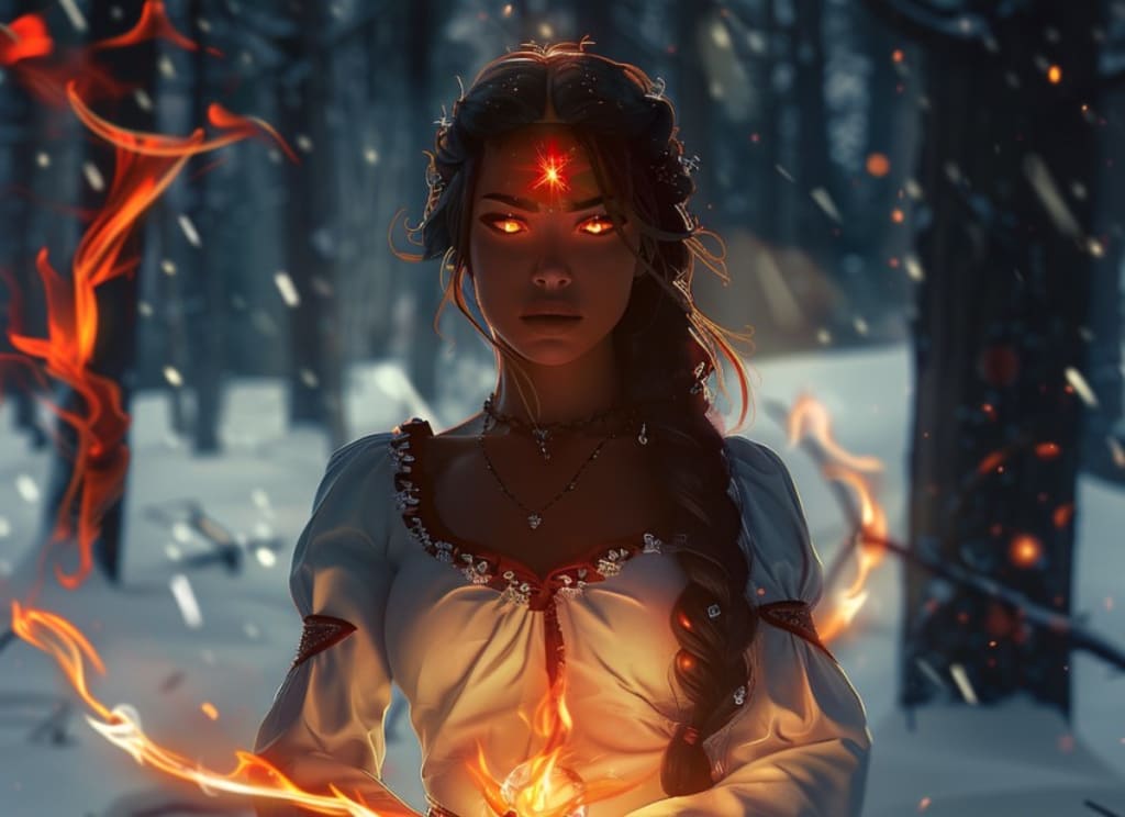 The cold air cut her, and the snow clung to her long dress, soaking into the fabric and seeping the heat from her limbs as it touched her skin. Yet Fyra didn't feel it, the fire of freedom coursed through her veins and leant wings to her feet as she plunged into the surrounding forest. Immediately she felt the smothering sensation which had clouded her whenever she was present amongst humans and those Brothers of the Order lift from her. She allowed a trickle of power to leak from her hands and laughed delightedly to see a flame spring to life in her palm.