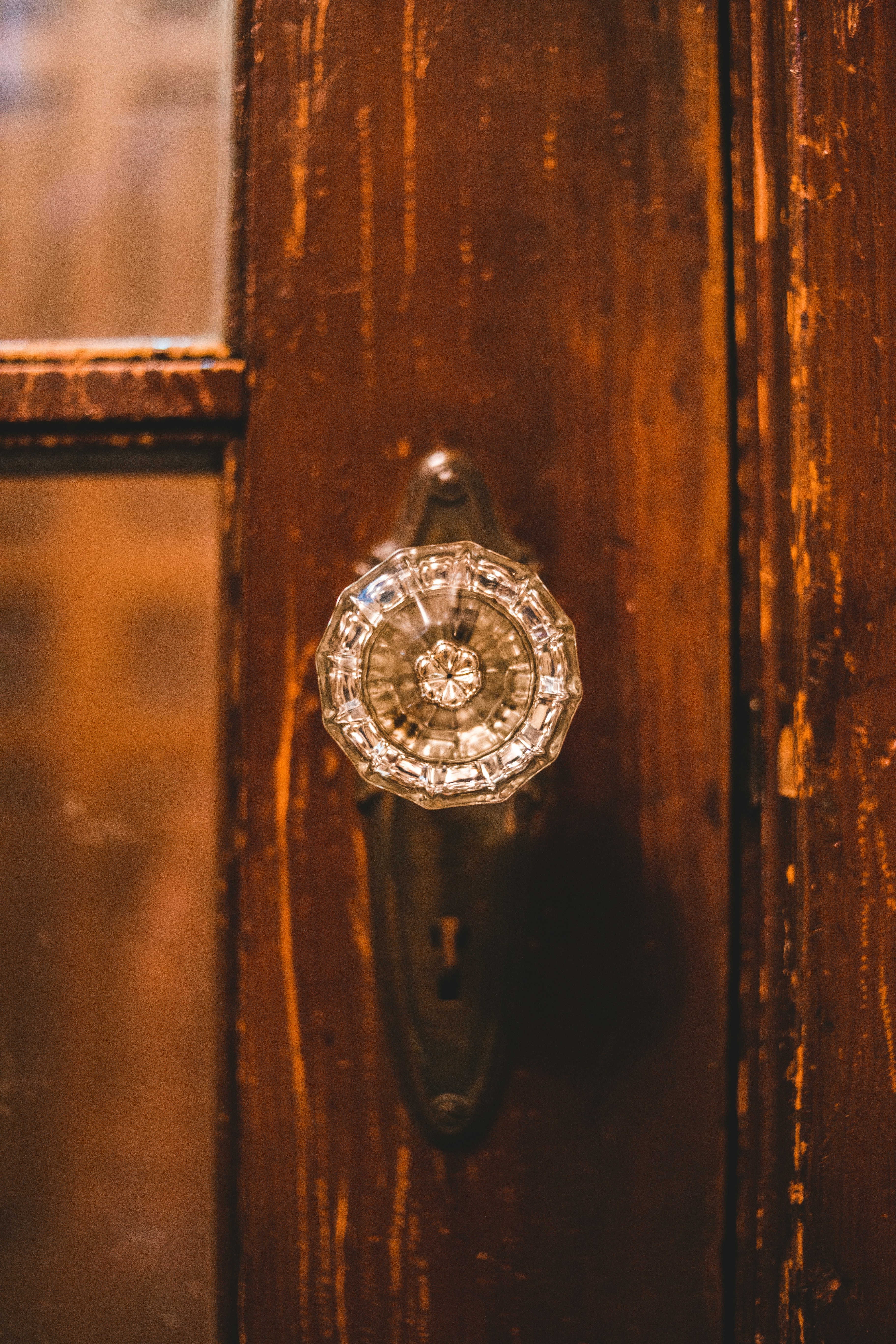 The door blended right into the wallpaper and heavily framed portraits of long-dead ancestors. Sconces blew amber-toned shadows across the crystal door knob, creating figures that danced on the floor, projecting distorted faces onto the walls. It was the only reminder of what could be behind the flickering jeweled flower in the middle of the door. Maybe a secret world, an empty room, or a place filled to the brim with dusty spider-ridden furniture long abandoned.