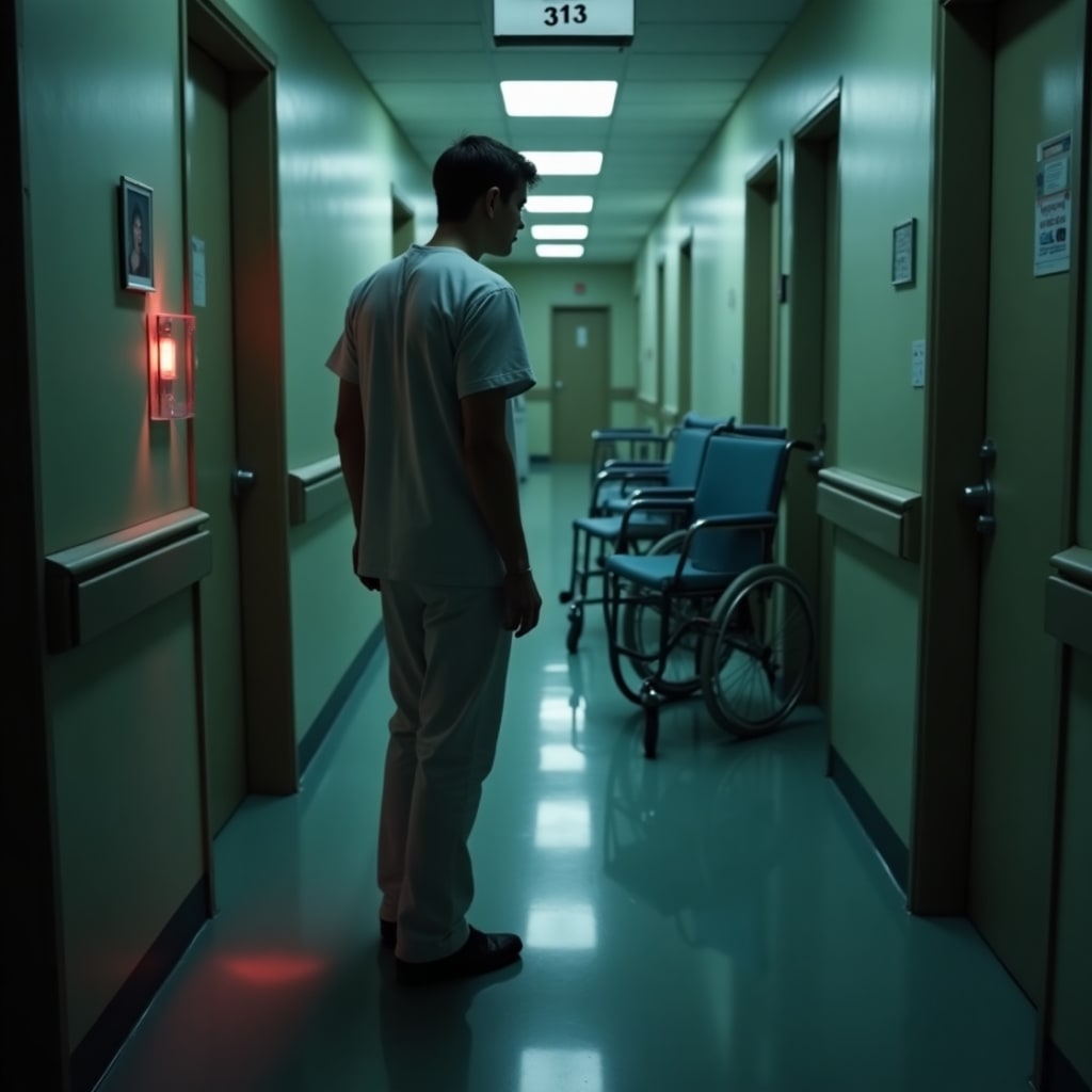 By 3:13 a.m., half the lights on the floor blew out. Patients screamed without cause. Monitors showed no pulses, though everyone was alive. Jason passed Room 313—and this time, the door was ajar.
