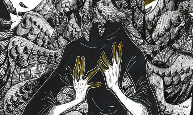 Surprisingly the wolves did not charge to meet the advancing horde, but stayed at the Big Man’s side as he raised his left hand palm first and shouted in a language that Tessa could not begin to understand. Bursting from his hand was a vast treachery of ethereal black ravens, each the size of an eagle. The birds tore through the onrushing wave of profane flesh. Then circled back in an organized flock to strike again.