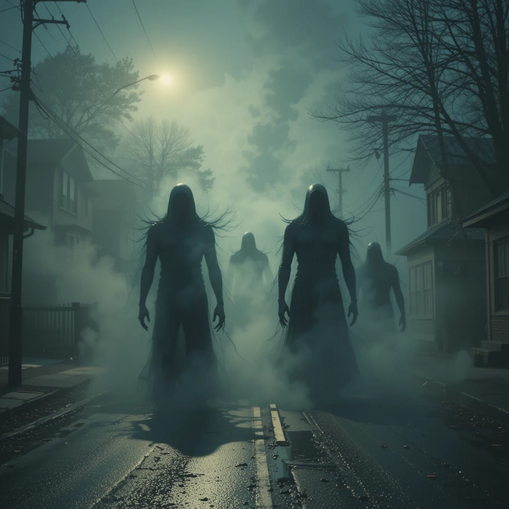 The rhythmic thrumming grew louder, more insistent, and the entire town began to shake, its foundations groaning under an immense pressure. The fog, a thick, gray blanket, began to swirl and writhe, and in the swirling mist, they could see them. They were like shadows, like phantoms, like ghosts. They were the drowned, and they were rising from the streets of the town.