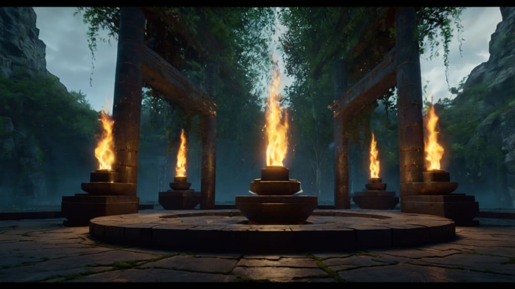 Fire Altar: Adam ignited a series of magical flames at the fire altar, which danced and intertwined, creating a powerful inferno that resonated with the primal forces of fire.