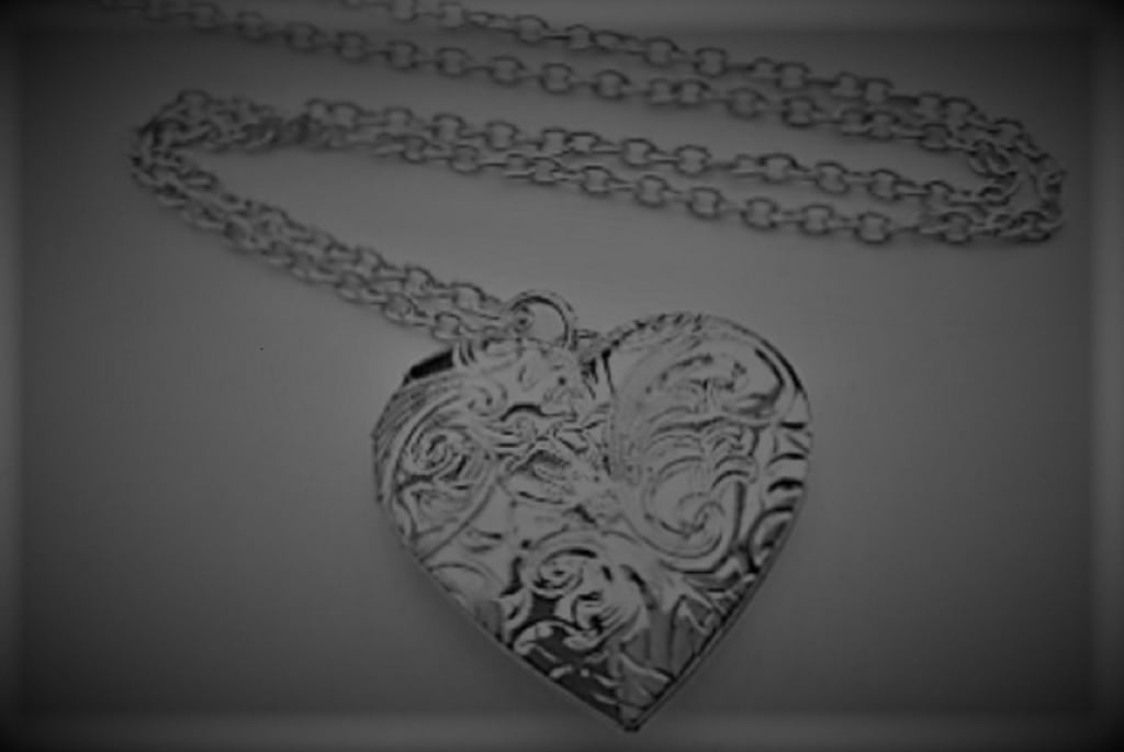 When she jumped, the locket, her payment for ensuring safety, bounced out of the pocket in which it was held. Upon hitting the floor, it opened laying face down on the ground. Not noticing the eyes watching her, she bent over to pick it up. As her eyes gazed onto the inside of the locket, her mouth dropped open. Before she could process, a hand jutted out blocking the locket from her view.