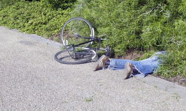 My father went for a bike ride without informing his wife. The ride was enjoyable until an unforeseen disaster occurred. The gate he needed to pass through was closed, so pressing the brakes hard was ineffective. My father slammed into the locking bar at full speed, flew over it, landed hard on the gravel ground, slit over it and his jacket was in tatters. He left without telling my mother about it. You should have seen her expression when she discovered the jacket later that day.