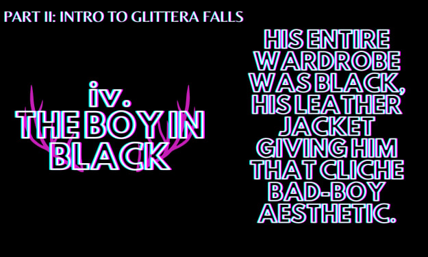 iii ☆ WELCOME TO GLITTERA FALLS SID FURROWED her eyebrows in confusion at the stranger’s words. “Who are you and who is we?” He tilted his head at her question, seeming to slip into another personality entirely. He cleared his throat, a wide grin spreading across his face.