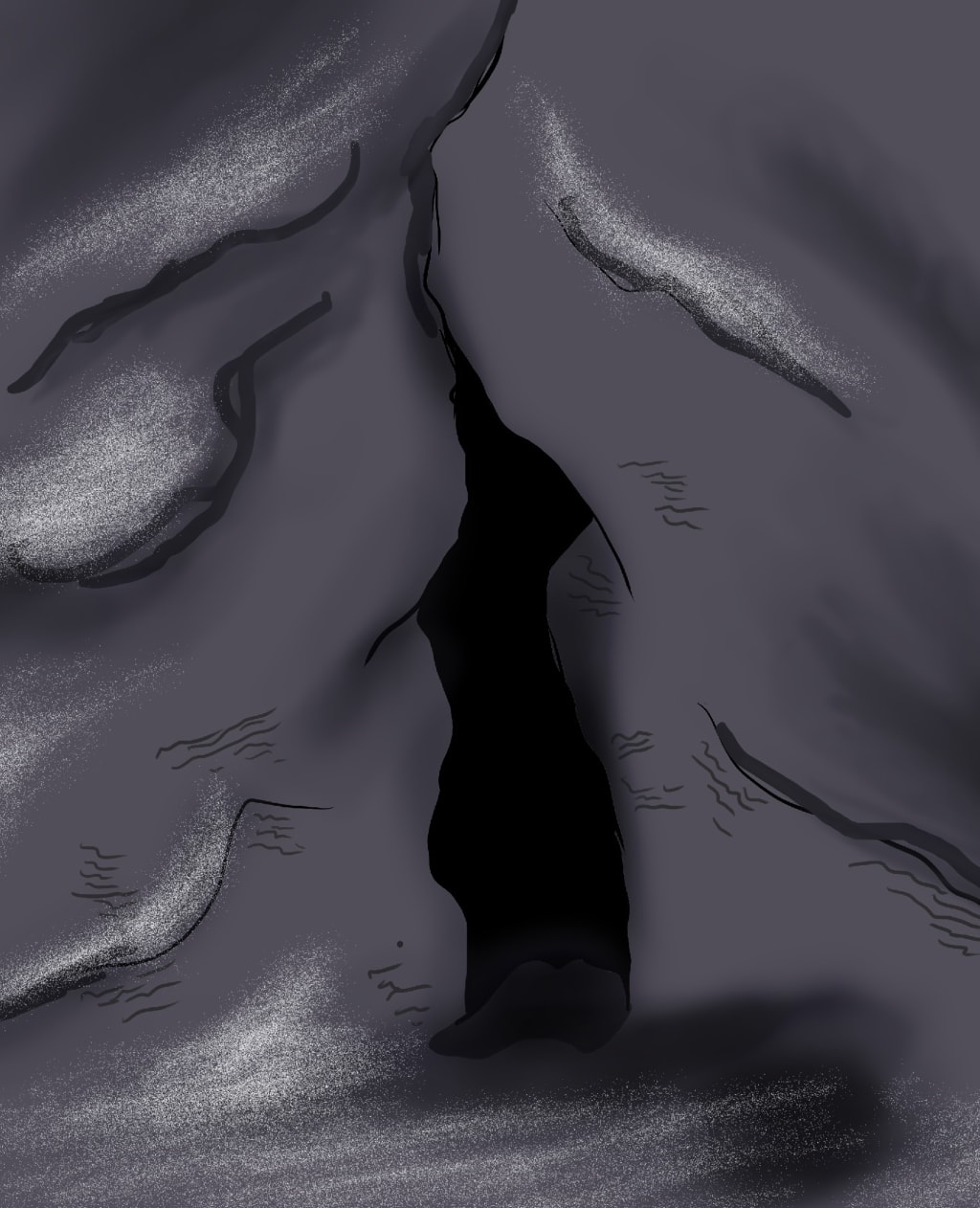 Lila put on a brave face and faced the blackness before her. Moaning wind sang its warning through the hollow, but she feared death by the king over death by the god. So, she took his first steps in with only a water canteen a loaf of bread in hand, for none knew how deep one had to go to find the other side. Before the darkness silenced the world outside, she heard cries of horror as the shock faded but none were brave enough to grab her once the mountain had swallowed her form.