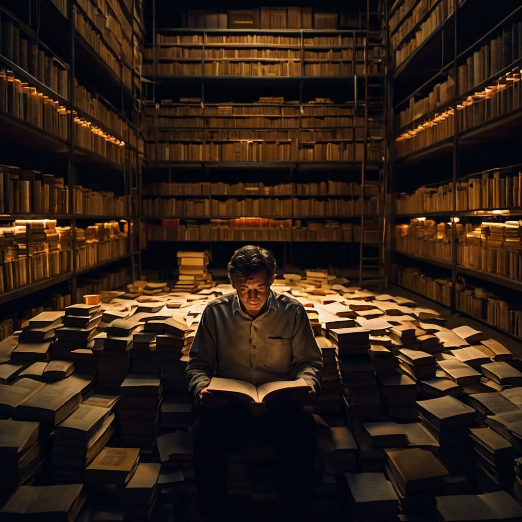 There is no sunlight here. Only the dim blue glow of memory. The air smells of dust, ink, and something... unspoken. The silence is not empty; it is listening.