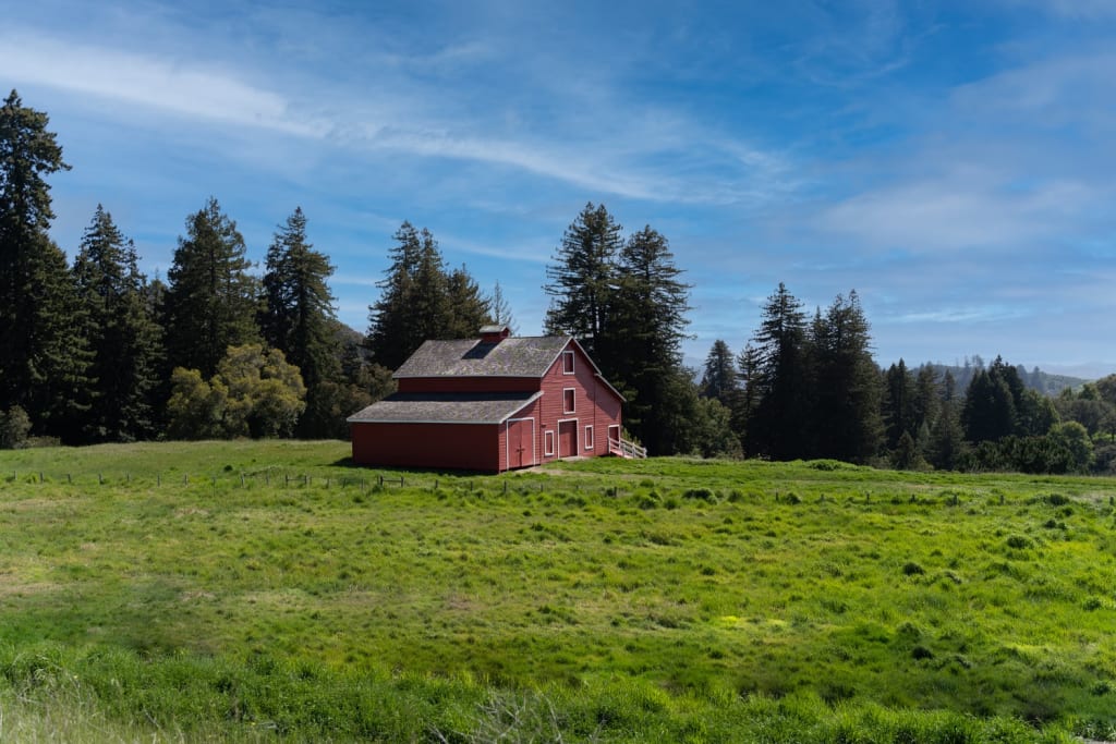 She could hear the wind whistle while she glanced around and noticed she was surrounded by thick evergreen. Soon the sounds of the rodents running through the forest brush faded in along with the sight of a big red barn. The barn looked to be about two stories high and, it seemed so fragile that a leaf could turn it to dust.