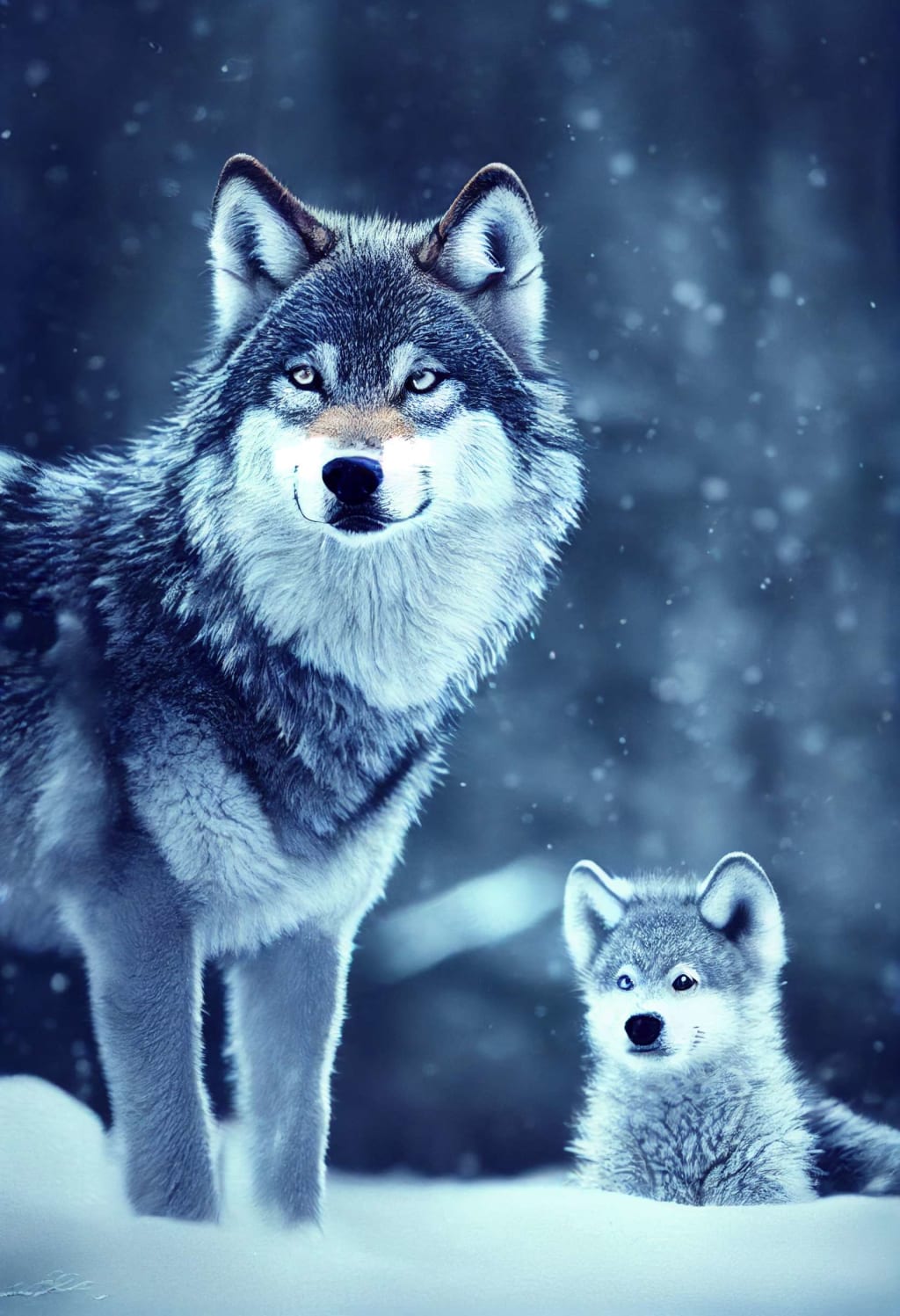 Curiosity seized hold of her, compelling her to follow the haunting sound. Before long, she stumbled upon a clearing. In the midst of it, stood a breathtaking wolf, its fur glistening like silver under the gentle caress of the moonlight.