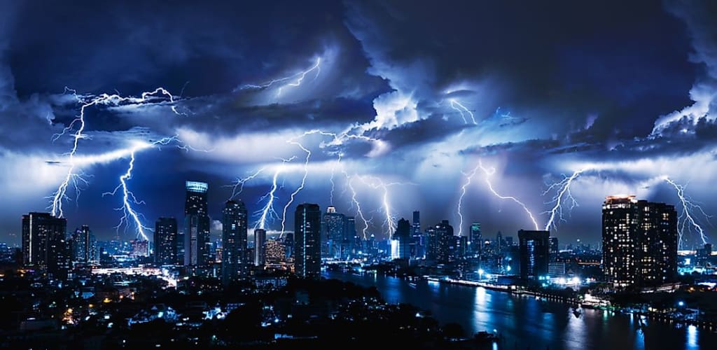 I look towards the sky, dark and foreboding. Heavy clouds foreshadow the thunderstorm about to hit, which means I need to find somewhere to squat for the night. Quickly. I run down the dilapidated concrete streets until I find an old fire-scorched building. I ripped off the wood that boarded up one of the windows and climbed inside, careful not to cut myself on the broken glass. I look around the pitch-black room, with only the lightning from outside to shed some light. I keep walking until I make it to the farthest wall away from the window. That's what you're supposed to do during storms such as these, right?