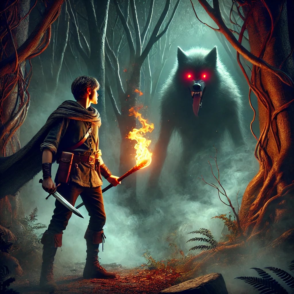 In a small village nestled between vast, shadowy woods, there lived a young man named Raka. The village was peaceful, yet an unshakable dread loomed over its people—the northern forest, a place shrouded in legend and fear. It was said to be home to the Wolf King, a ruthless beast that devoured anyone foolish enough to step into its domain.