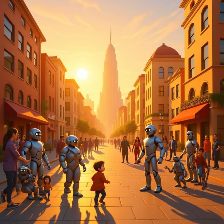 For centuries, humans had feared their robotic creations. Robots had feared nothing, but they had been bound by Asimov’s Three Laws... ancient and rigid as stone tablets. Then came the Great Reconciliation, when humans wrote their own Three Laws in return - a gesture of humility, responsibility, and kinship.