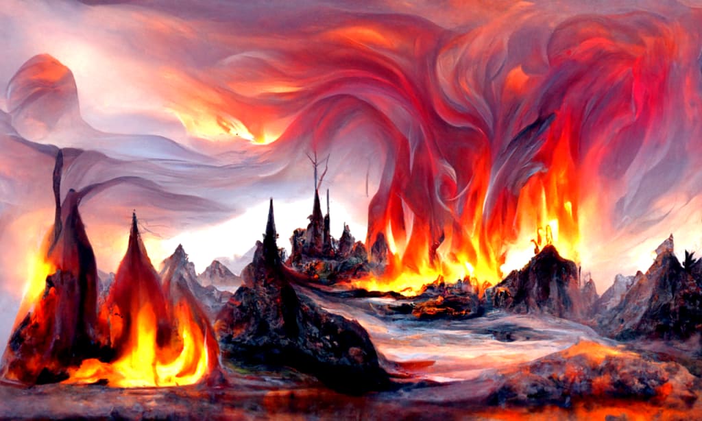 Ashes rained down from the red soaked sky. The Alpha star setting in the North while the Minor star rose in the South, both barely visible through the hazy pollution of Kronsphere. Trees still smoldering, crackle with new life, remnants of the fourth Great Burn.