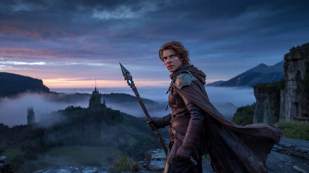 Taking a deep breath, she stood and looked once more toward the horizon. There, just beyond the mist that hovered low over the valley, a faint light flickered. It wasn’t the ordinary glow of a distant campfire or the shine of moonlight on water. This was something different. Something... magical.
