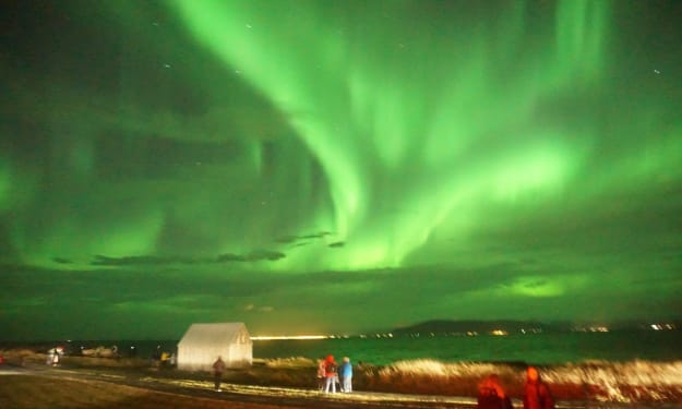 Ray opened the front door and he and his friends stepped outside, a look of awe and wonder suddenly filled their eyes and minds. It had to be nine thirty or later, but there was no moon or stars, no clouds either. The entire sky just glowed with an eerie fluorescent green color. The men said nothing, They all only looked at each other bewildered.