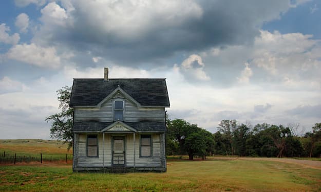 I am confused. I look around. How did I get here? It’s cold. Cold and damp. We are in the deep woods. The trees – I see the leaves have turned and they are starting to fall. I can only guess at the month – mid to late November? To my right there is an old house – small one story, run down, worn-out even.