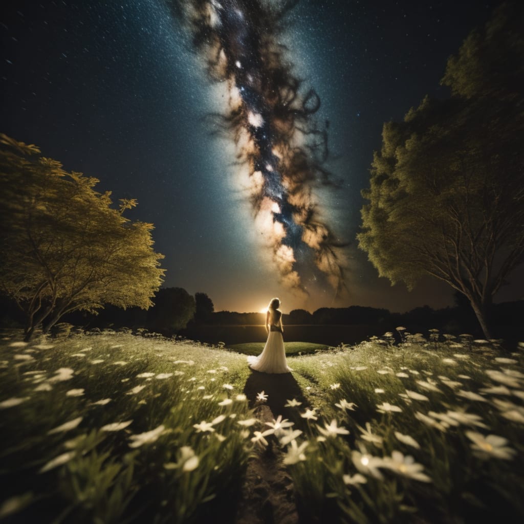 In the garden of stars, where the night is a canvas,