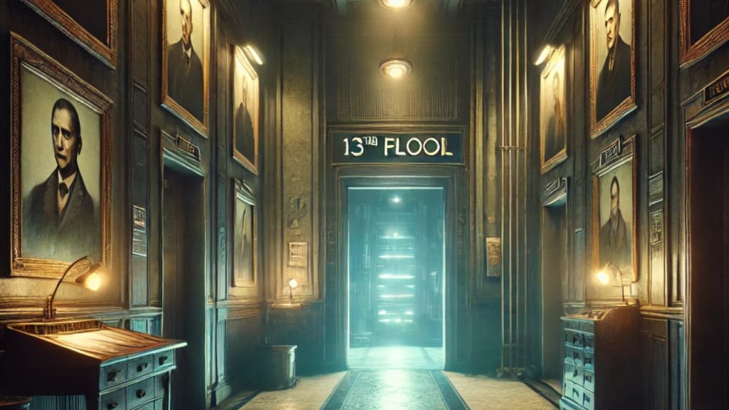 Mallory presses the button for the ground floor, but as the elevator descends, it jolts to a stop on the 13th floor—a floor that doesn’t exist in the building directory. Confused, she checks her phone, but there’s no signal. The elevator doors open with a slow, groaning sound.
