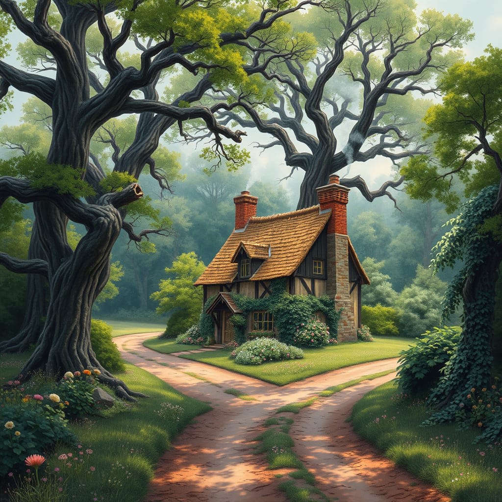 Sarah's GPS led her down a winding road that gradually became less maintained. Dense pine trees pressed close to the narrow street, creating a tunnel of green that seemed to swallow any trace of the city behind her. The cottage appeared suddenly, almost emerging from the forest itself—a weathered structure of gray wood and stone, surrounded by overgrown gardens and rusted wind chimes.