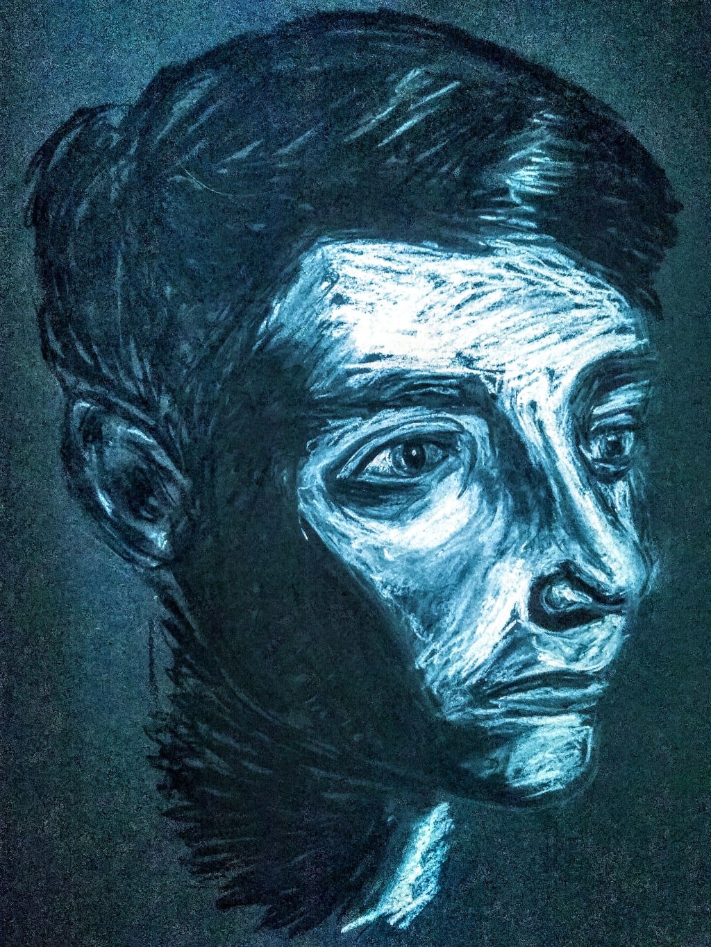 Only now, in the deep blue of the entertainment’s full swing, can I feel my heart. Not that bloody vessel, so alien now to my greying and secluded life. But the locket, the locket! Heart-shaped, but cold, so cold against the skin of my chest where my real heart beats weakly from the other side. I grip the locket now, fingers curling around steel. A gaudy heart. Like a naive teenager trying to convince himself he’s in love - how I hated these symbols before - romance, plastic, poison to the Avant Garde intellectual. To any artist worth his dignity. To the world-weary, wry wisdom of real men. It was a gift, obviously - men didn’t buy such things for themselves - and the details were already faded in my mind. Once, those sentiments would have been immortalised in my work, but now this locket is all I have to hang those memories onto; the chain ripples and I see the old car; the scent of steel reaches my nose and I feel the sun; the stony cold burns into my chest and I see the top of her head. Now, this crude soul of metal is worth more than any of the coins they can bury me in, for my 'work'; my heart is sunk and only the locket remains. Closed and enclosed in my palm, and slowly warming in the folds of my skin. Almost connecting to the dense capillaries of my fingers. Sweat smoothes the silver surface, and now the locket is hot. I squeeze harder, and I can feel my pulse straining through my hand. I squeeze harder.