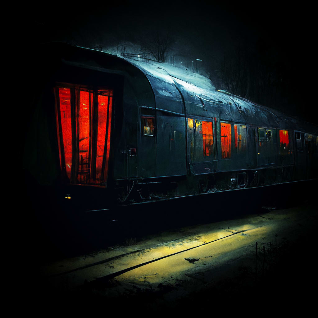 He remembered his pocket knife and frantically reached for it, opening the blade with trembling hands as he gripped it tightly in case he needed to defend himself. He didn't know where this train was headed or why he had been brought here against his will, but he suspected that he'd better start preparing for a fight sooner rather than later. He held his ground as best he could and waited for what was coming next…but nothing happened. He lowered himself slowly back into his seat and took a steadying breath ready to stab whatever grotesque abomination would be coming for him.