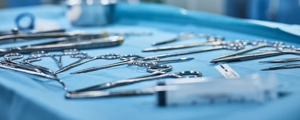 Annette walked over to a tray table lined with medical tools near Maxine.